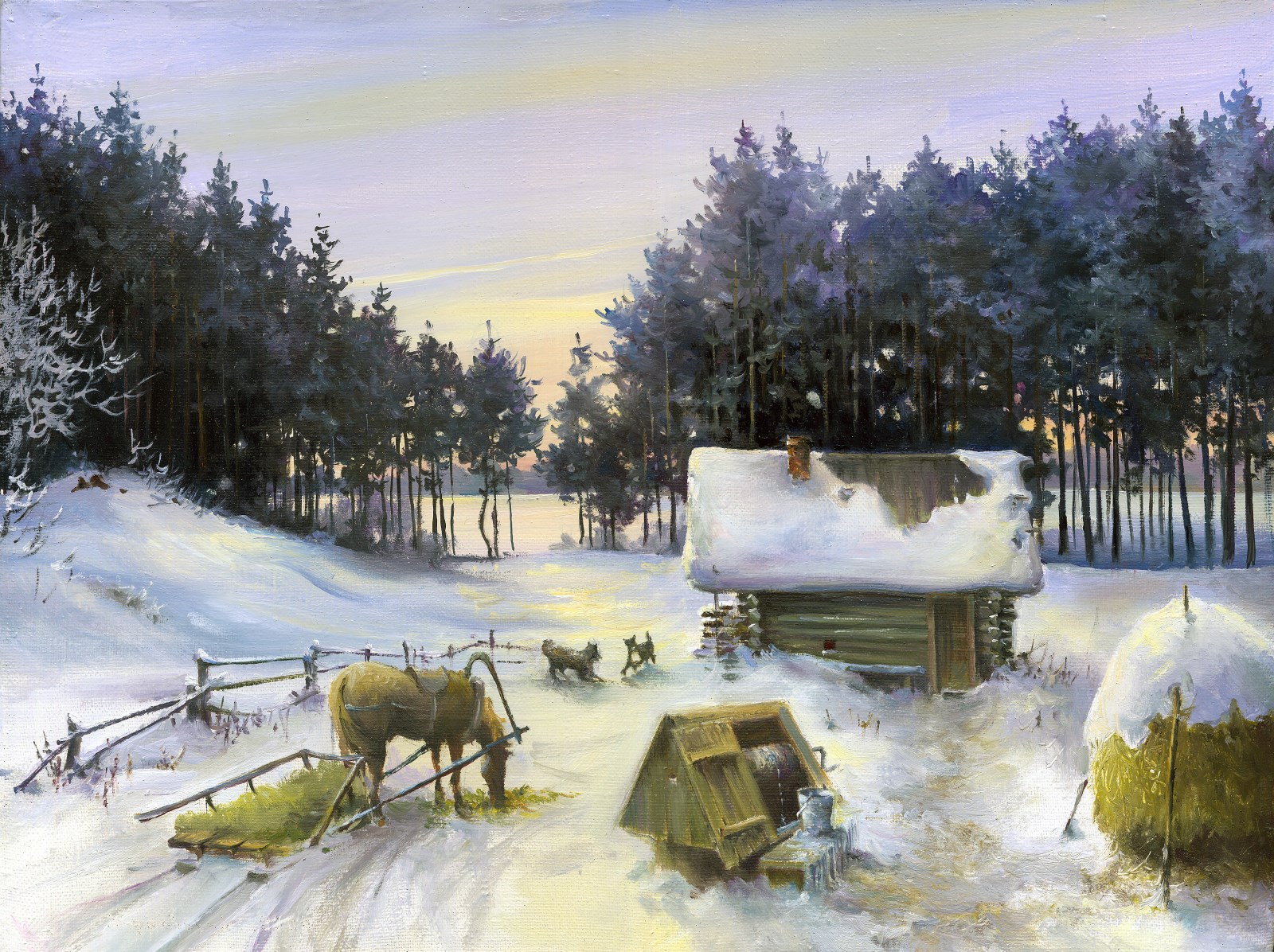 Painting winter landscape