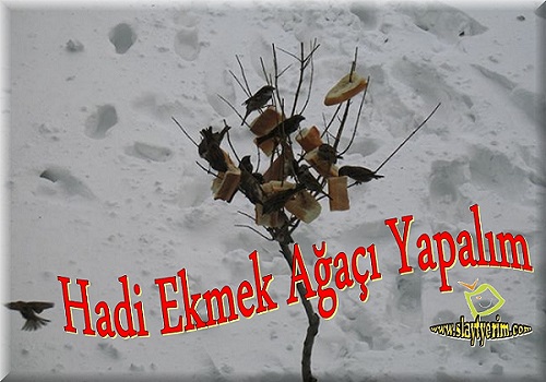 Kış günlerinde hayvanları aç bırakmayalım. Yemediğimiz ekmekleri işte böyle ekmek ağacı yaparak parklara bahçelere uygun yerlere koyalım