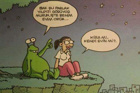 Erkek: - Bak şu parlak yıldızı görüyormusun, işte benim evim orda. Kadın: - Kira mı kendi evin mi ?..