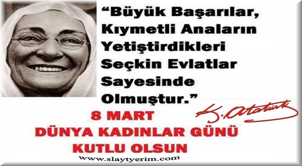 Büyük başarıları kıymetli Anaların yetiştirdiği seçkin evlatlar sayesinde olmuştur. 8 Mart Dünya Kadınlar Günü