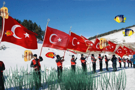 Türk Bayrağı Karlı Dağlarda Akvaryum