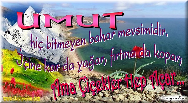 UMUT hiç bitmeyen bahar mevsimidir, içine karda yağar, fırtına da kopar. AMA ÇİÇEKLER HEP AÇAR.