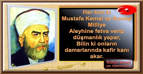 Her kim ki Mustafa Kemal ve Kuvayi Milliye aleyhine fetva verip düşmanlık yapar, bilin ki onların damarlarında kafir kanı akar... Maraş Milli Mücadele Kahramanı: Sütçü İmam