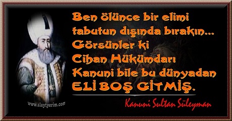 Ben ölünce bir elimi tabutun dışında bırakın... Görsünler ki Cihan Hükümdarı Kanuni bile bu dünyadan ELİ BOŞ GİTMİŞ... Kanuni Sultan Süleyman