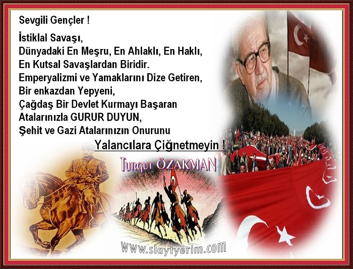 Ünlü tarihçi, büyük vatanperver insan rahmetli Turgut ÖZAKMAN' dan sevgili gençlere öğütler.. e-kartı